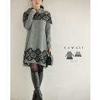 SからL対応 お花スタンプのスヌードとニットミニワンピース2点セット