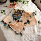 トルコ雑貨で人気 トルコ伝統手芸“OYA(オヤ)”が付いたスカーフ イーネオヤ スカーフ/トルコの伝統レースサーモン/old