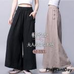ワイドパンツ ガウチョパンツ レディース ゆったり 体型カバー ワイド ズボン 春夏秋 ボトムス パンツ リネン おしゃれ 綿麻 大人 きれいめ