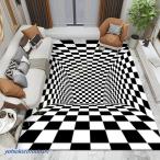 インテリア センターラグ カーペット 室内用 滑り止め付き ラグマット3D 渦の錯視 黒と白の三次元錯覚 おしゃれ かわいい カフェ風 洗える 北欧家具