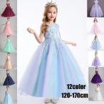 【特価】発表会 ロング子供ドレス結婚式 子供 女の子 刺繍レースチュールドレス 120 130 140 150 160 170cm