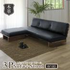 【欠品5月中旬入荷】 ソファ ソファー 3人掛け 幅180 3P スツール 本革 木脚 ウォールナット ブラック カウチソファ ローソファ 肘無し オットマン 高級 モダン