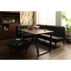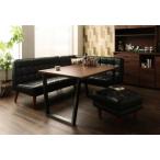 ヴィンテージスタイル・リビングダイニングセット 4人 4点セット(テーブル+ソファ1脚+アームソファ1脚+スツール1脚) 左アーム W150