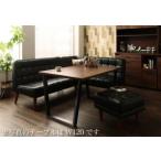 ヴィンテージスタイル・リビングダイニングセット 4人 4点セット(テーブル+ソファ1脚+アームソファ1脚+スツール1脚) 右アーム W120 組立設置付