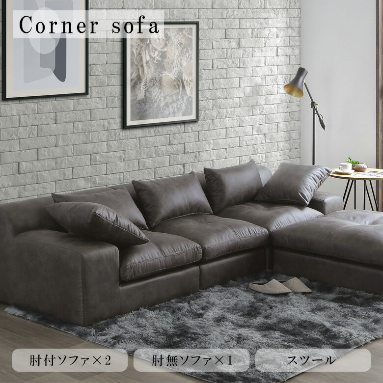 先着で8%offクーポン ソファー カウチソファー L字 コーナーソファ おしゃれ カウチセット 応接 合皮 北欧 片肘 高級 ボリューム シンプル おしゃれ ゆったり くつろぎ リビング 2色対応 向き選択可能 左カウチ 右カウチ モダン インダストリアル スツール
