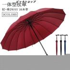 ステッキ傘 杖傘 長傘 一体型 ステッキアンブレラ 超大型 雨傘 撥水 耐強風 16本骨 ジャンプ傘 大判 晴雨兼用 梅雨対策 軽量 高級 無地