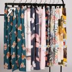 リラックスパンツ 柄 レディース ステテコ ルームパンツ 夏 春夏 リラックス 部屋着 花柄 ハイビスカス シャレテコ カプリパンツ ひざ下