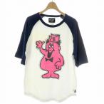 ステューシー STUSSY Tシャツ カットソー 半袖 ラグランスリーブ プリント グラフィック ピンク キャラクター ロゴ S 白 ホワイト 紺