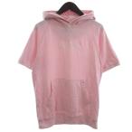 ステューシー STUSSY パーカー 半袖 プルオーバー ロゴ刺繍 ピンク S ■ECT メンズ