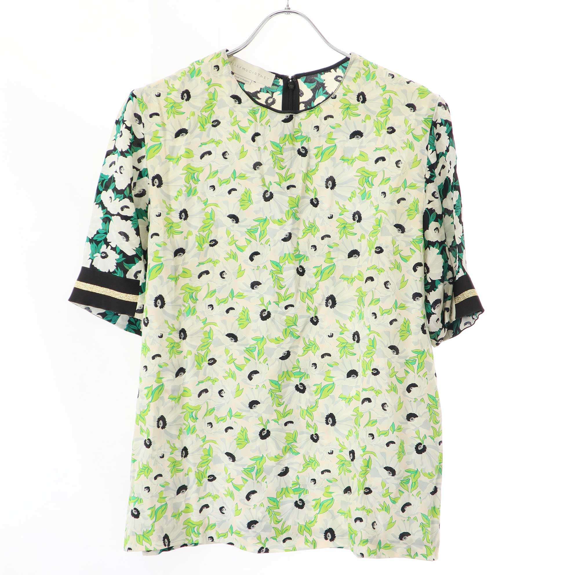 STELLA McCARTNEY ステラ マッカートニー 16SS フラワープリントシルクトップス 408731 グリーン系 38 【中古】 IT2WP216TROS