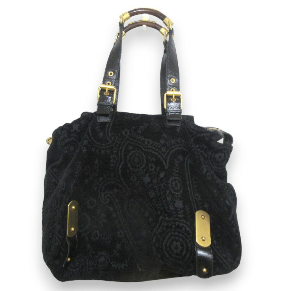【楽天スーパーSALE20%OFF】【中古】美品 STELLA McCARTNEY ステラマッカートニー ゴブラン織 ウッドハンドル トートバッグ+ポーチ ブラック×ゴールド金具 レディース Luxs ブランド古着のリュクス