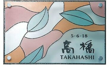 【10%OFF!スーパーSALE特価】 表札 ガラスサイン表札 GPL-117ステンドグラス シンプル表札 外構工事 店舗 看板 新築祝いに