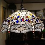 ヴィンテージ ティファニースタイル ステンドグラス ドラゴンフライ トンボ ペンダントランプ 3灯 アンティーク おしゃれ ビンテージ