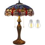 即納!ティファニーブルー&オレンジステンドグラス・トンボスタイル・リーディングライト・メタルベース輸入品