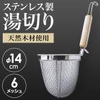 湯切りざる 湯切り 道具 ステンレス 木柄 湯切りザル うどんてぼ 14cm 丸底 麺茹で 業務用 振りザル 麺揚げ てぼざる 湯切り網 ラーメンてぼ テボ 調理器具 ザル