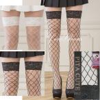 ニーハイストッキング 黒 白 レース付き ガーターストッキング 網ニーハイ 網タイツ 大ネット ガーターベルト不要 ピタキュート 日本製