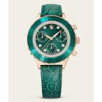 腕時計 「公式」「スワロフスキー」Octea chrono ウォッチ, スイス製, レザーストラップ, グリーン, ローズゴールドトーン仕上げ レディ