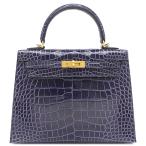 エルメス 2WAYバッグ ケリー25 外縫い アリゲーター ブルー クロコ ショルダー シャイン