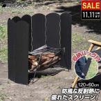 1年保証 焚き火スクリーン ウィンドスクリーン リフレクター 遮熱板 風よけ 風防 ブラック 大型 8枚連結 幅120cm 防風 輻射熱 ウインド FIELDOOR 送料無料