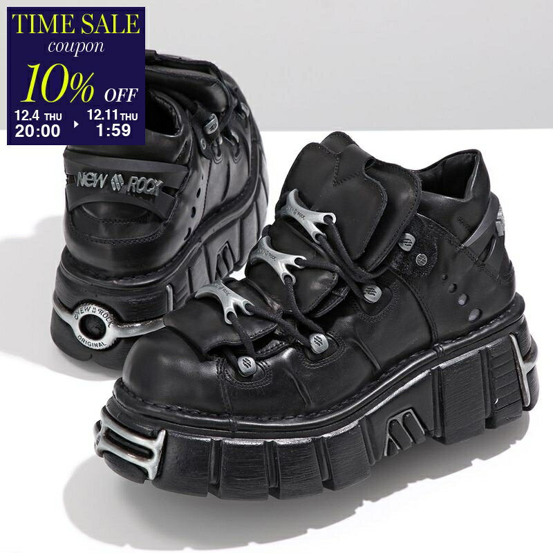 【10%OFFクーポン対象・12/4-20時~】NEW ROCK ニューロック スニーカー M-106-S1 レディース ローカット 厚底 ロゴ レザー シューズ 靴 ブラック【cp_ten】