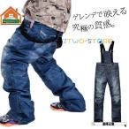 デニムの様な スノボパンツ スノボウェア スキーウェア メンズ スノーボード スノボー スノーシュー バックカントリー 雪遊び オーバーオール デニム柄 防雪