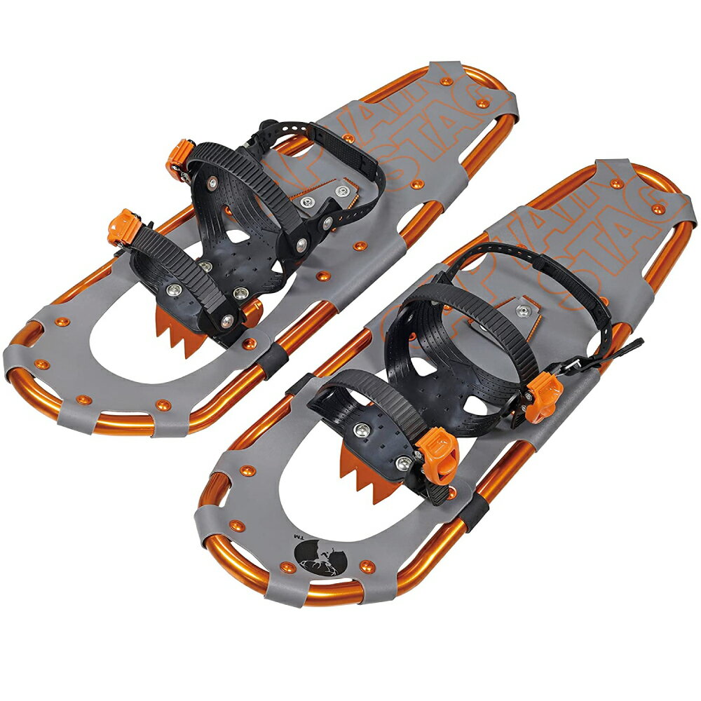 スノーシュー かんじき メンズ レディース 25インチ アイゼン スキー ハイキング トレイル バックル式 ベルト フリーサイズ ジュニア 雪山 オレンジ グレー