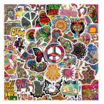 ヒッピー文化 ピースマーク 世界平和 戦争反対 ワゴン車 カラフル シール 手帳用 シール ステッカー50枚J