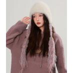 ニット帽 ニットキャップ モヘアニット フリンジイヤーキャップ ビーニー/MIXカラー ニット帽 冬 レディース