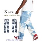 ワイドデニムパンツ メンズ ボトムス ロング HIPHOP 絞り染め ヒップホップ ダンス ジーパン チノパン ストレッチ ルーズフィット ビンテージ