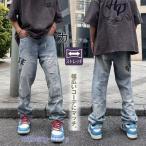 ワイドデニムパンツ メンズ ボトムス ロング ダメージ レトロ 個性的 ジーンズ チノパン ストレッチ ルーズフィット ビンテージ 太め おしゃれ