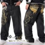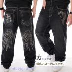 ワイドデニムパンツ メンズ ボトムス ロング 刺繍 ヒップホップ デザイン ジーンズ チノパン ストレッチ ルーズフィット ビンテージ HIPHOP