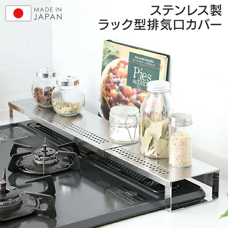 排気口カバー キッチン用品 カバー 排気口 国産 スライド式 ステンレス コンロ奥ラック & 排気口カバー 排気口 汚れ防止 油はね防止 ラック スパイスラック キッチンラック 幅調節 60cm 75cm キッチン用品 便利 日本製 台所 キッチン