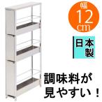 【~29日1:59★P5倍】ステンレス 調味料ラック 幅11.5 奥行54 3枚引き戸 日本製 お手入れ簡単 組立品 スパイスステーション 3段 スライド扉 調味料入れ 調味料収納 スパイスラック 隙間 キッチン 棚 コンロ脇 スリム 省スペース 2445