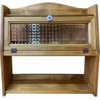 三段スパイスラック チェッカーガラス扉 アンティークブラウン 45×15×45cm キッチン収納 木製 ひのき ハンドメイド 受注製作