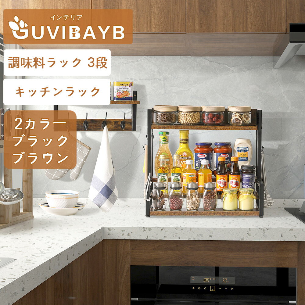 【P10倍&数限定クーポン20%off】キッチンラック 3段 調味料ラック スパイスラック 収納ラック 木製 卓上ラック スリム 調味料入れ 机上ラック 収納棚 小さいラック コンパクト 突っ張り スチール 頑丈 台所収納