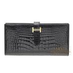 【未使用品】エルメス ベアンスフレ 長財布 アリゲーターマット ブラック シルバー金具 W刻印【中古】 BP 【送料無料】