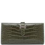 エルメス 長財布 ベアンスフレ アリゲーター カーキグリーン 深緑 二つ折り財布 中古