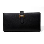 HERMES エルメス 二つ折り長財布 Bearn Souffle ベアン スフレ レディース ボックスカーフ レザー B刻印 Hメタルロゴ GD金具 ブラック