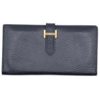 HERMES エルメス ベアンスフレ リザード □G刻印 ゴールド金具 長財布 ブラック