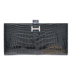 エルメス ベアンスフレ 二つ折り長財布 クロコアリゲーター ブラック シルバー金具 B刻印
