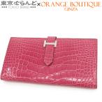 エルメス HERMES ベアンスフレ □J刻印 フューシャピンク シルバー金具 アリゲーター ダイヤモンド K18WG 長財布 レディース 25XM 101832522