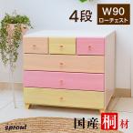 チェスト たんす 4段 幅90 完成品 ピンク かわいい おしゃれ 姫系 北欧 木製 桐 桐たんす 洋服タンス 衣類たんす 洋服収納 衣類収納 引き出し 引出 収納 箪笥 カラフル スプラウト90-4ローチェスト