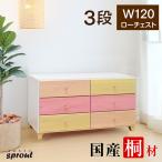 【日本製・完成品】桐チェスト幅120cm 3段引き出し ローチェスト 桐箪笥 収納家具 衣類収納 クローゼット 木製 大容量 タンス 桐タンス 引き出し たんす 洋服ダンス 洋服タンス 子供部屋 日本製 国産 衣類タンス スプラウト (120-3段)