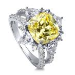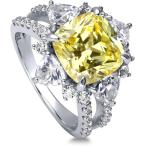 【並行輸入品】BERRICLE ロジウムメッキ スターリングシルバー カナリアイエロー クッションカット キュービックジルコニア ステートメント ヘイ