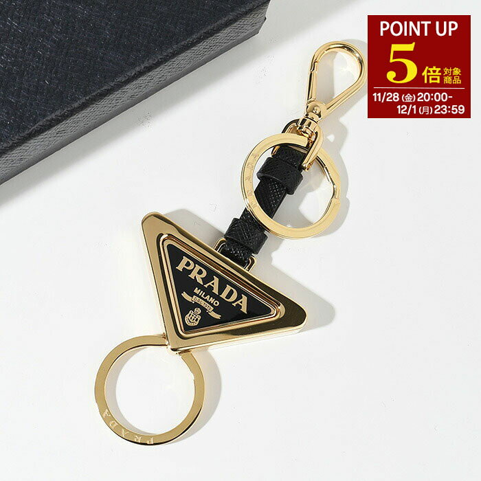 【P5倍対象商品】PRADA プラダ キーチャーム キーホルダー レザー×メタル キーリング 1PS059 66A レディース ゴールド トライアングルロゴ スプリットリング バッグチャーム