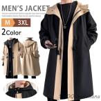 スプリングコート ロングコート メンズ ビジネスコート トレンチコート 春秋冬 カジュアル コート 大きいサイズ アウター カラー配色 ゆったり ロング丈 スプリ