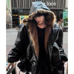 ブルゾン アウター ファートリミングフードダークブラックレザージャンパー メンズ レディース
