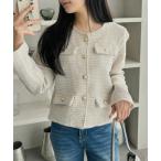 ジャケット ノーカラージャケット スプリング ツイード 金ボタン ノーカラー ジャケット レディース