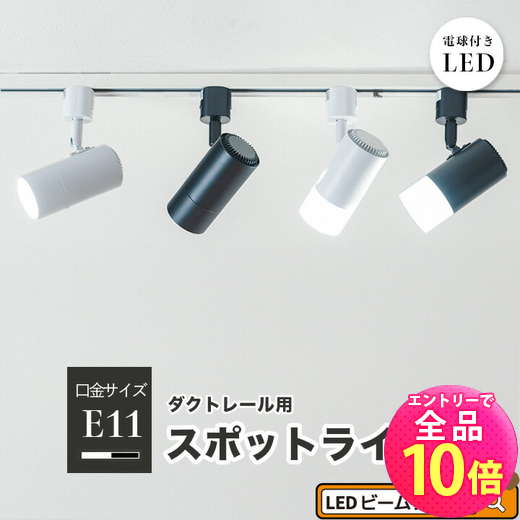 【P10倍以上!エントリー必須】ダクトレール スポットライト 照明 ライト レールライト E11 LED電球付き 50W 黒 白 E11RAIL-LDR6-E11 ビームテック