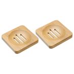 uxcell 木製の石鹸皿 浴室 浴槽 キッチン 水槽用 自動排水機能付き 天然竹質 石鹸トレイ 石鹸ラック 貯留器 2個入り